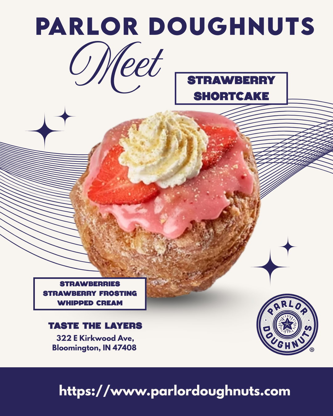 For my campaign, “Meet the Doughnuts,” I positioned Parlor Doughnuts as Bloomington’s most exciting spot for creative, high-quality layered doughnuts that offer more than just a sweet treat. This brand isn't just about great food. It’s about giving customers a chance to try something different, to explore new flavors, and to enjoy an experience that feels playful, personal, and memorable. I wanted to move Parlor beyond just being a doughnut shop and into a space where each flavor has a personality.